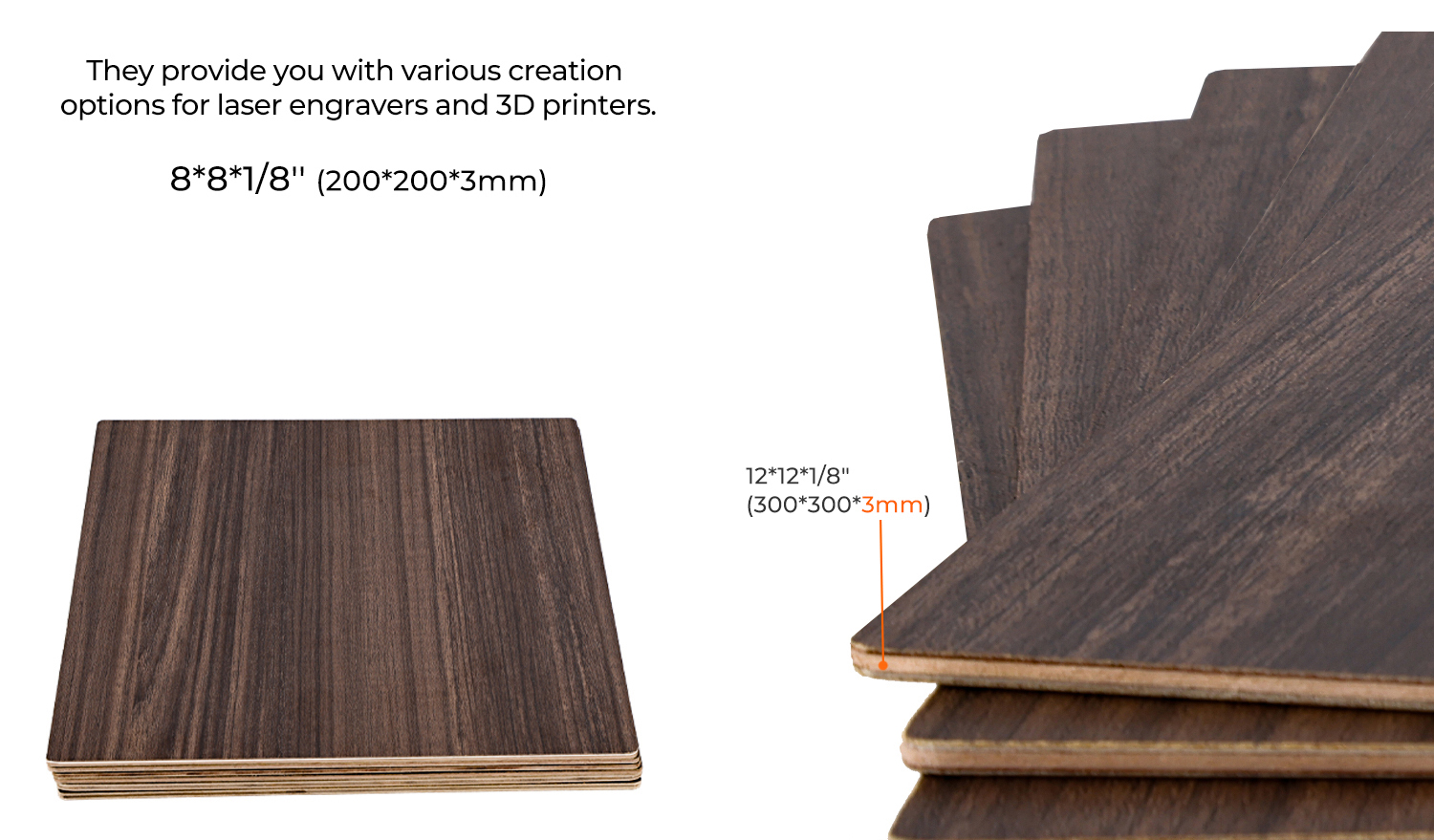 Disse valnøttfinérplatene er nøye utvalgt som høykvalitets materiale for laserskjæring og gravering. Den glatte, stabile overflaten og jevne tykkelsen gjør dem perfekte til presis bearbeiding uten flising eller deformasjon.