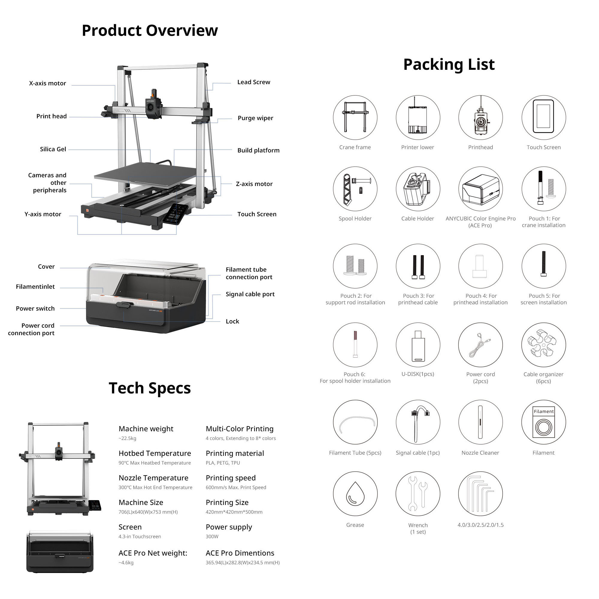 Støtter flerfargeutskrift via Anycubic Color Engine Pro (ACE Pro).