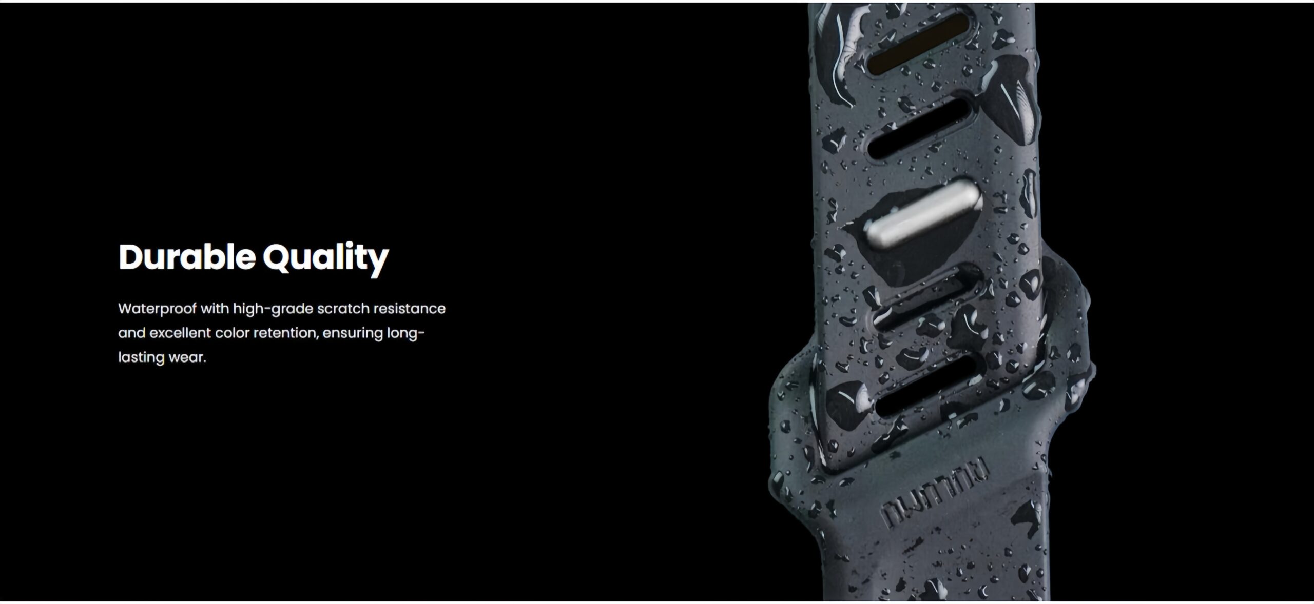 Remmen er laget av høyytelses fluoroelastomer (FKM), et materiale som er både slitesterkt og robust, men samtidig mykt og behagelig å ha på. De karakteristiske asymmetriske justeringshullene gir et unikt visuelt uttrykk.