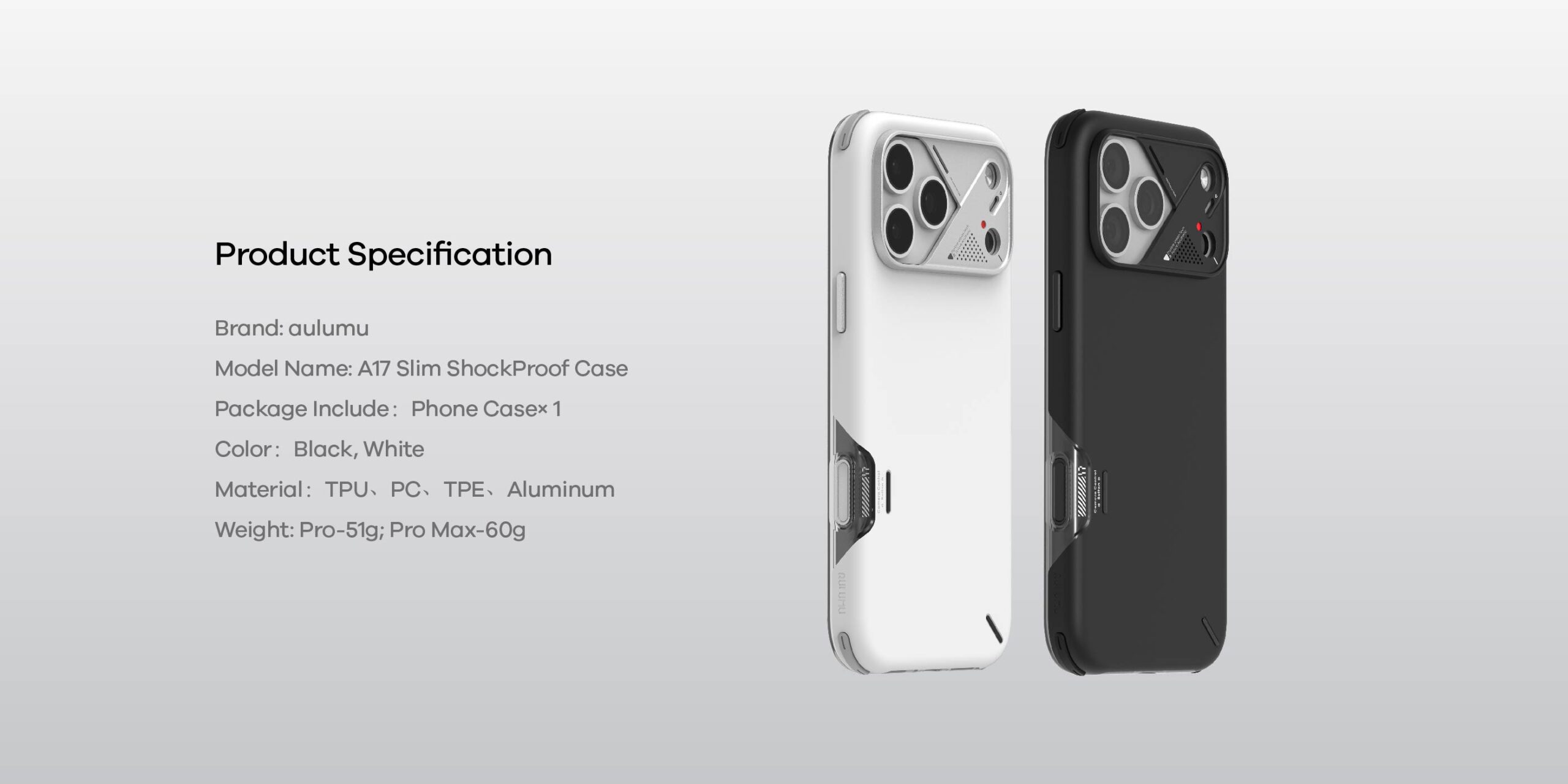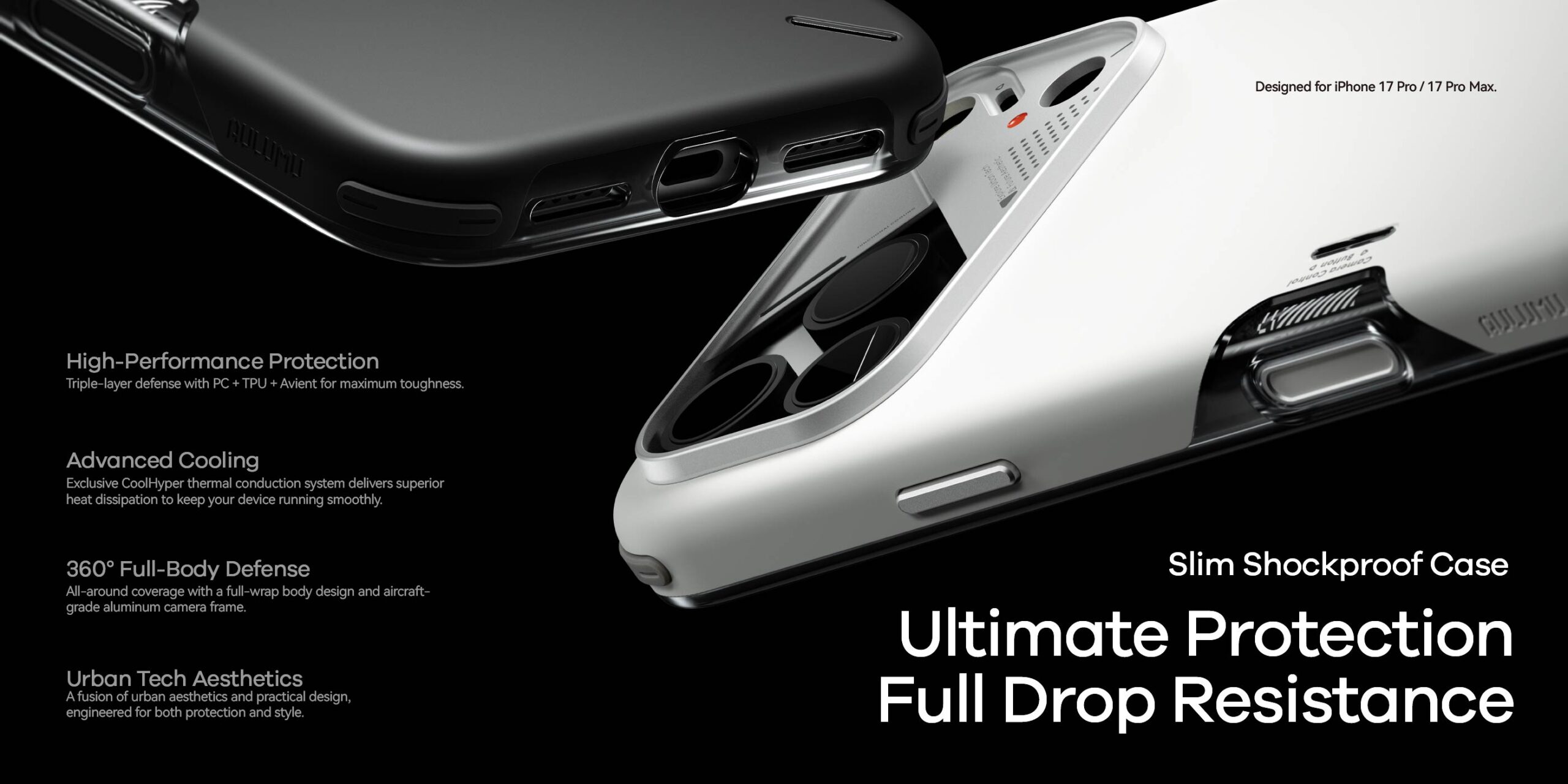 Aulumu Slim Shock Proof Case for iPhone 17 Pro, 17 Pro Max