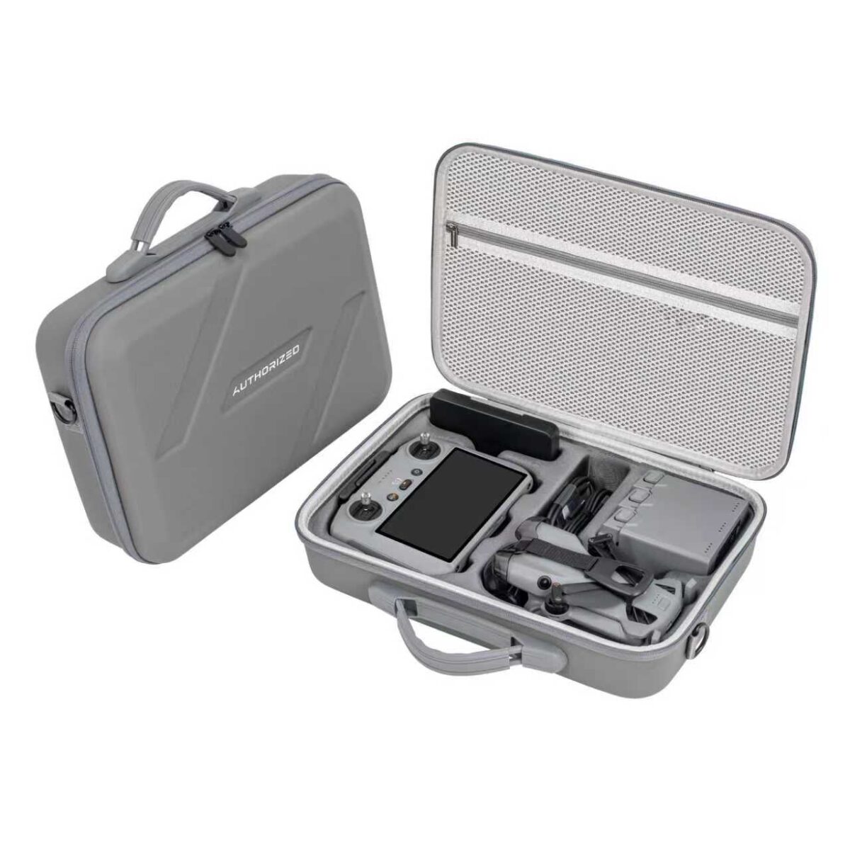 Flere formstøpte rom holder alt utstyr på plass: dronen, RC 2-kontrolleren, tre batterier, ladehub, kabler, propeller og små tilbehør. Innvendige mesh-lommer gir ekstra plass til SD-kort eller filtersett.