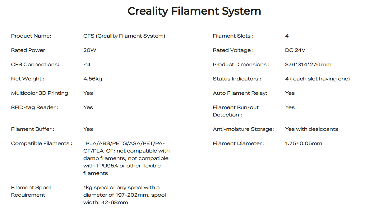 CFS-systemet (Creality Filament System) er utviklet for flerfarget 3D-utskrift med fokus på brukervennlighet og stabil drift.