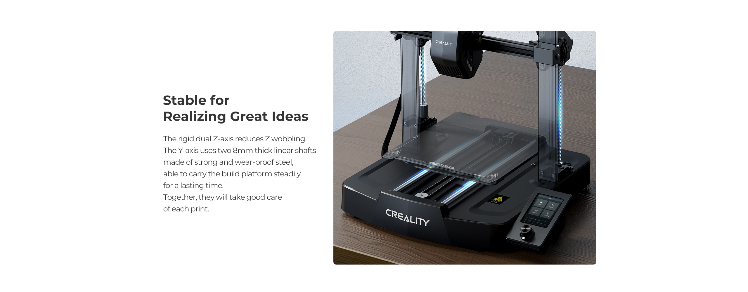 Stabil konstruksjon – dobbel Z-akse bidrar til å redusere vibrasjoner og Z-wobbling.