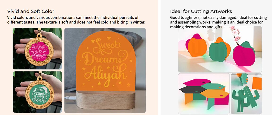 Materialene har jevn overflate og optimal tykkelse (4 mm), som gir stabile og rene kutt med laser.