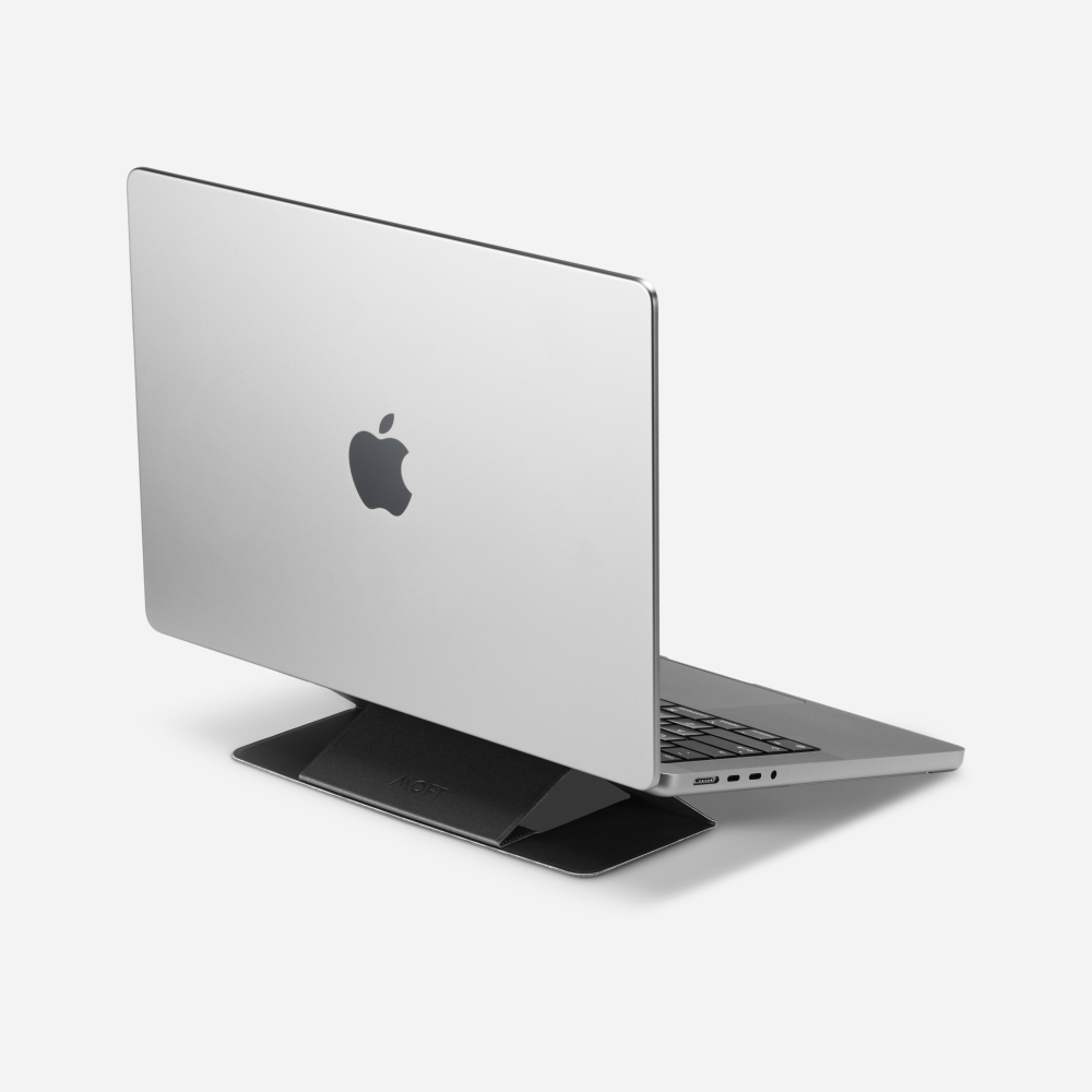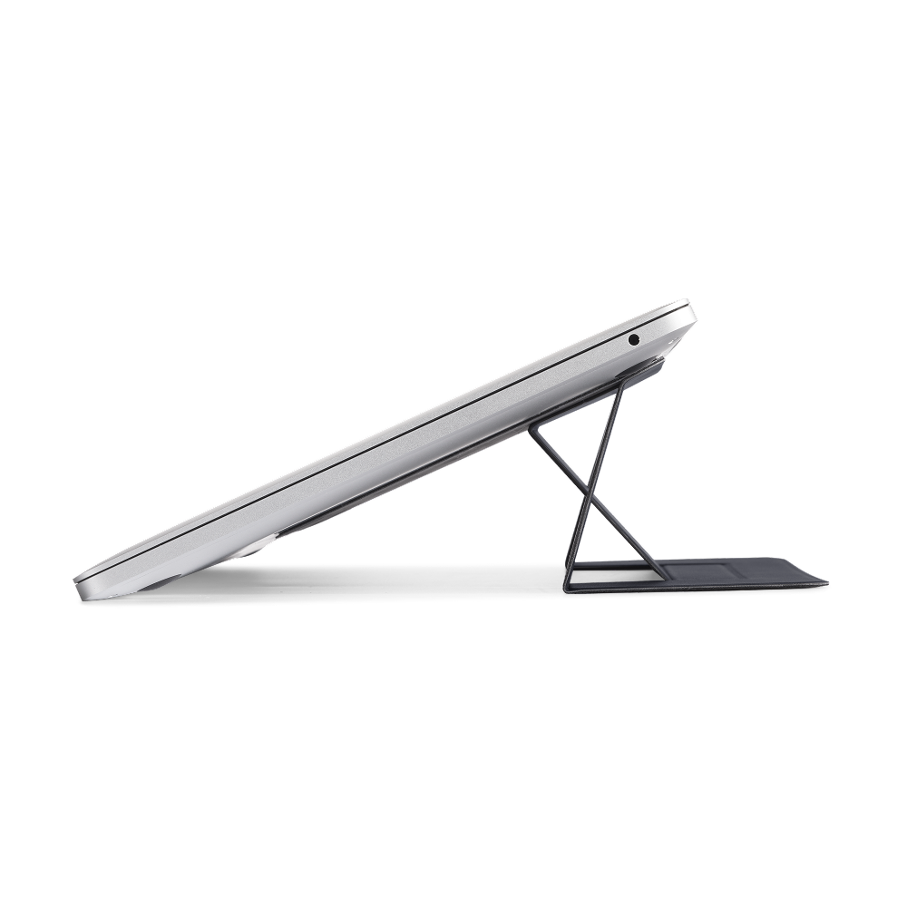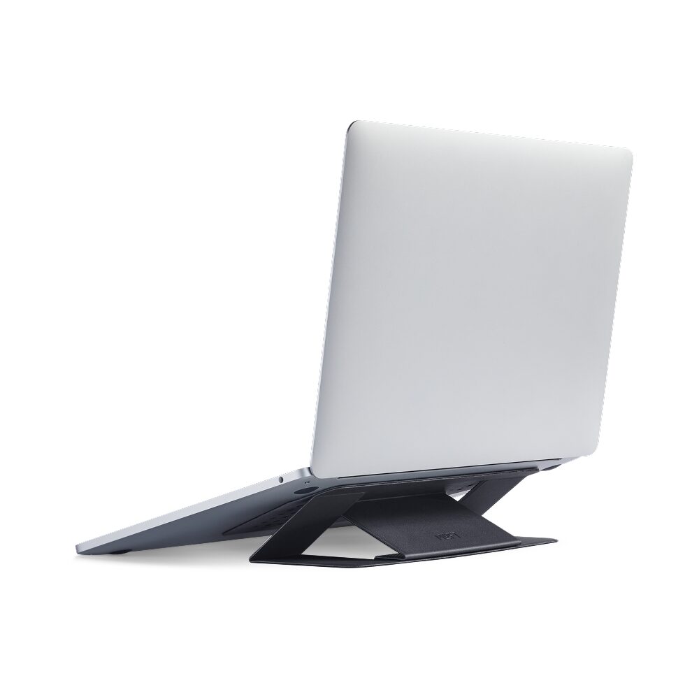 MOFT Adhesive Laptop Stand er et ultratynt og sammenleggbart laptopstativ som festes permanent under den bærbare datamaskinen.