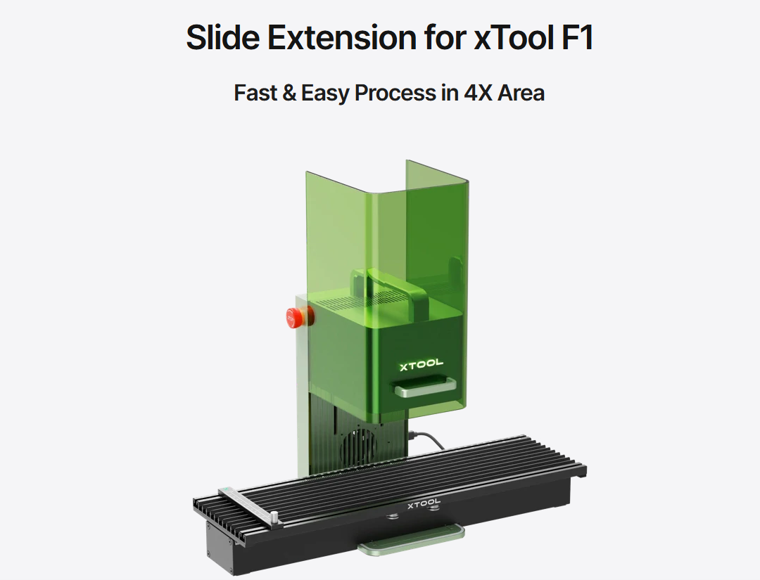 xTool F1 Slide Extension er et tilbehør utviklet for å utvide arbeidsområdet til xTool F1-serien.