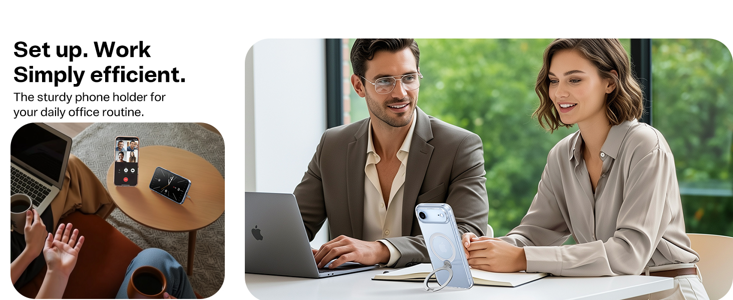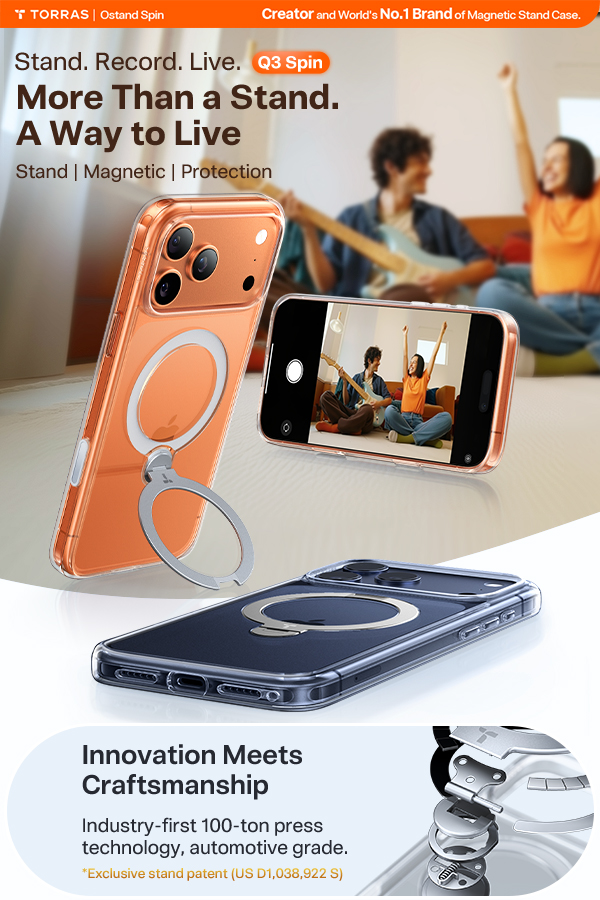 TORRAS Ostand Q3 Spin kombinerer praktiske visningsvinkler med god hverdagsbeskyttelse, slik at du kan bruke telefonen komfortabelt både stående og liggende.