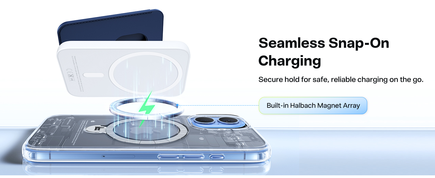 Med innebygde neodymmagneter og 18N magnetkraft får du en stabil MagSafe-opplevelse ved lading og bruk av magnetiske tilbehør.