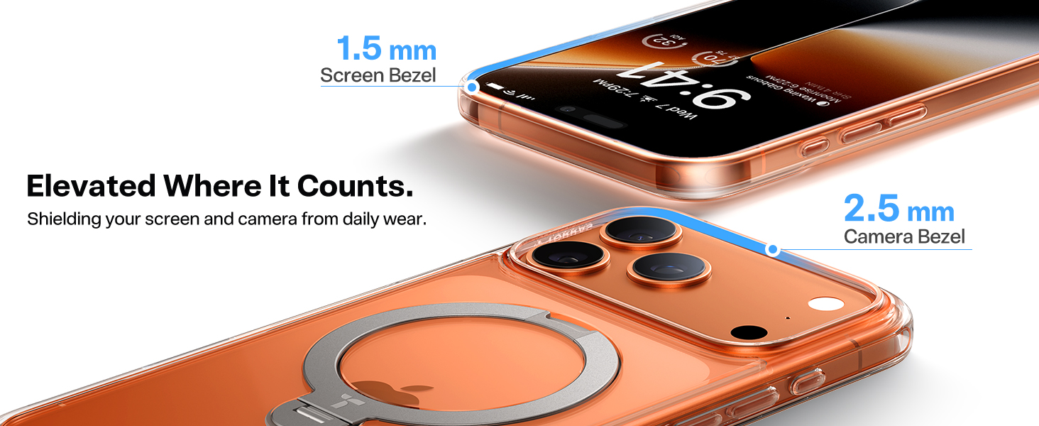 Dekselet gir 10 ft / ca. 3 meter fallbeskyttelse og har forhøyede kanter som beskytter både skjerm og kamera ved daglige støt og bruk.