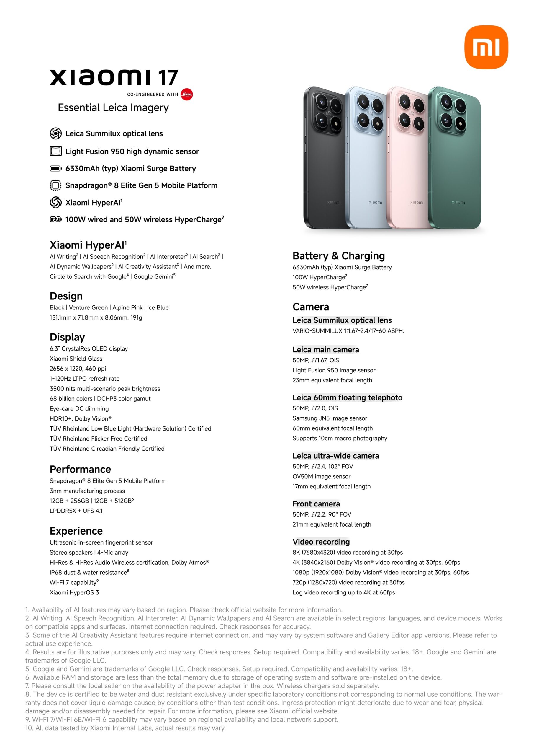 Leveres med HyperOS basert på Android, som gir en mer intelligent og sømløs brukeropplevelse.